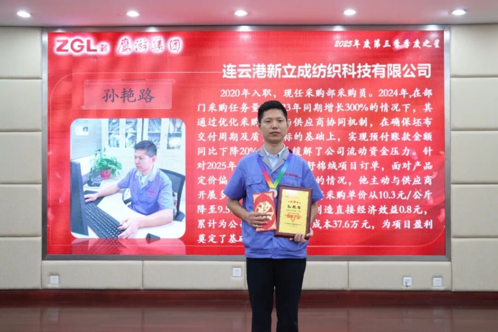 孙艳路,2020年入职鹰游新立成纺织科技公司,现任采购部采购员。其通过优化采购流程与供应商协同机制,有效缓解了公司流动资金压力。针对项目订单利润空间有限的情况,他主动与供应商开展多轮商务洽谈,为项目盈利奠定了基础。